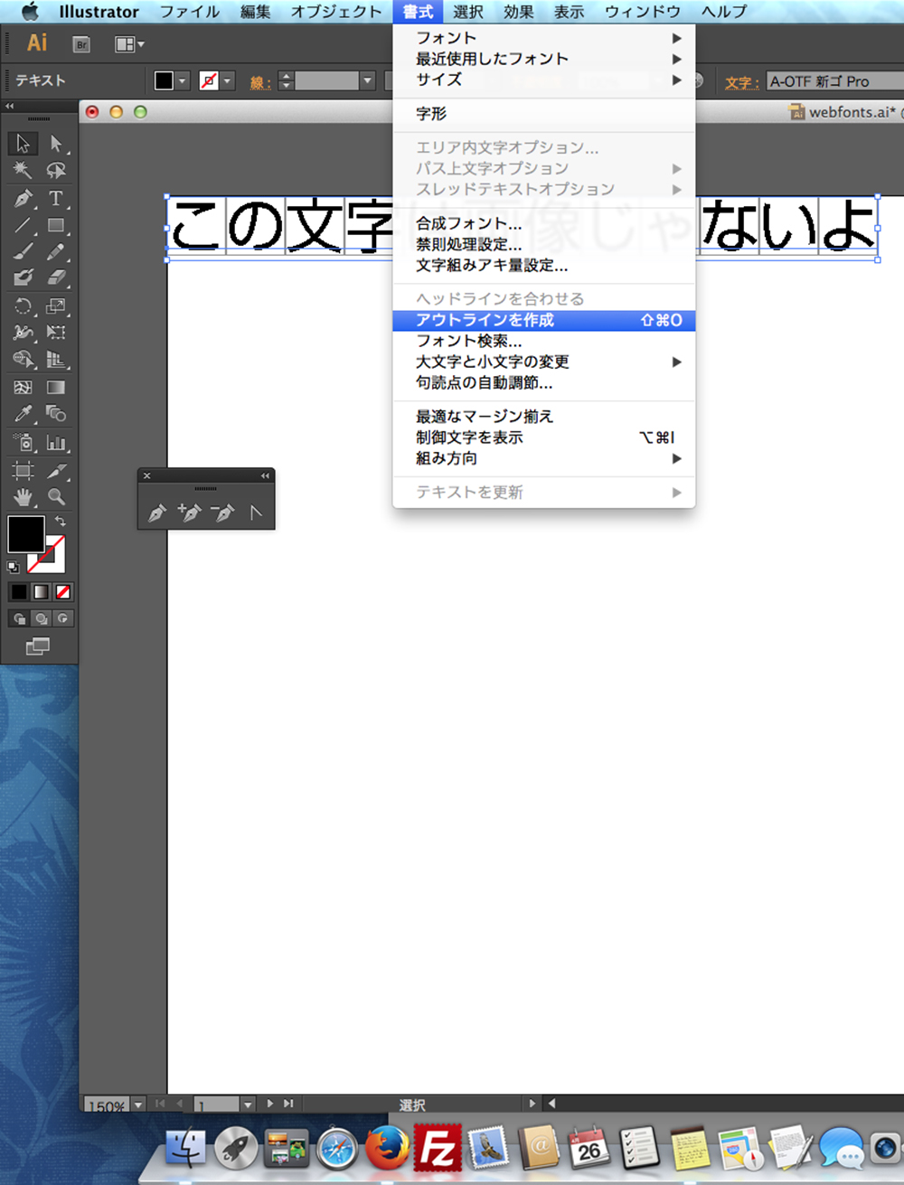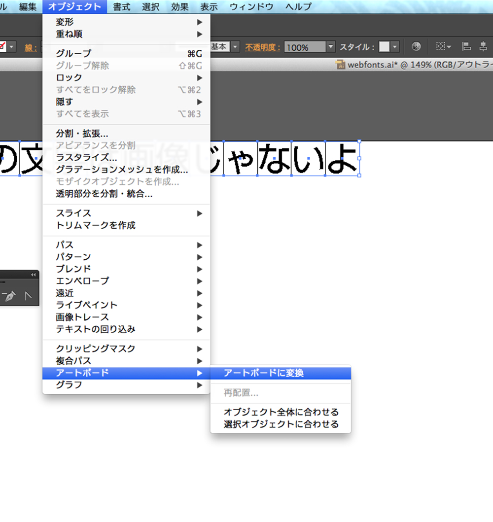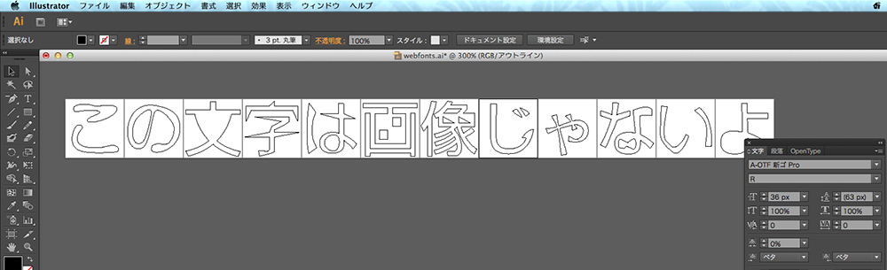 文字をアウトライン化します。